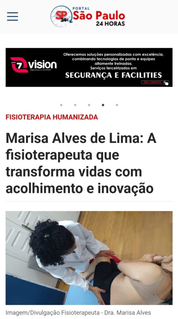 Veja como a Dra. Marisa Alves de Lima tem sido destacada na mídia por sua abordagem inovadora e profundamente humanizada em fisioterapia. Explore as matérias abaixo e descubra o impacto transformador de seu trabalho na saúde e bem-estar dos pacientes.